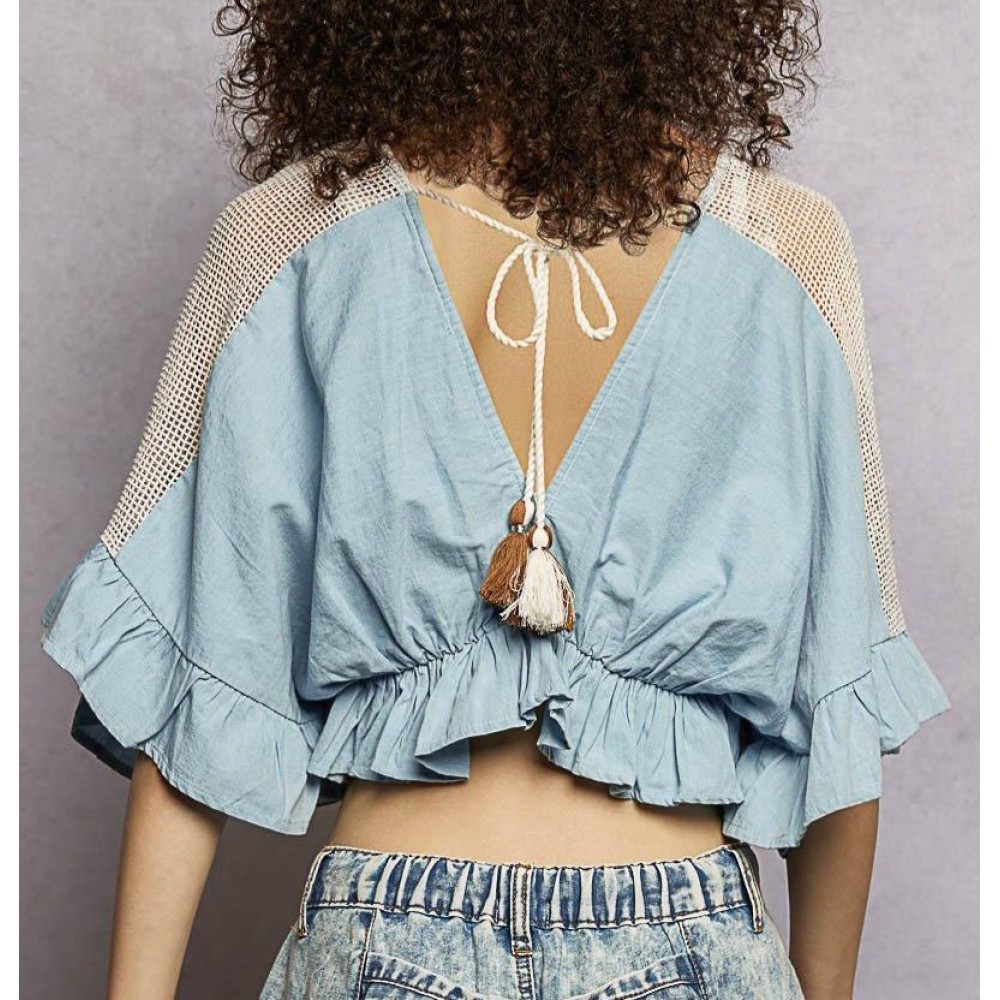 BLUSA CROP DENIM BOHO