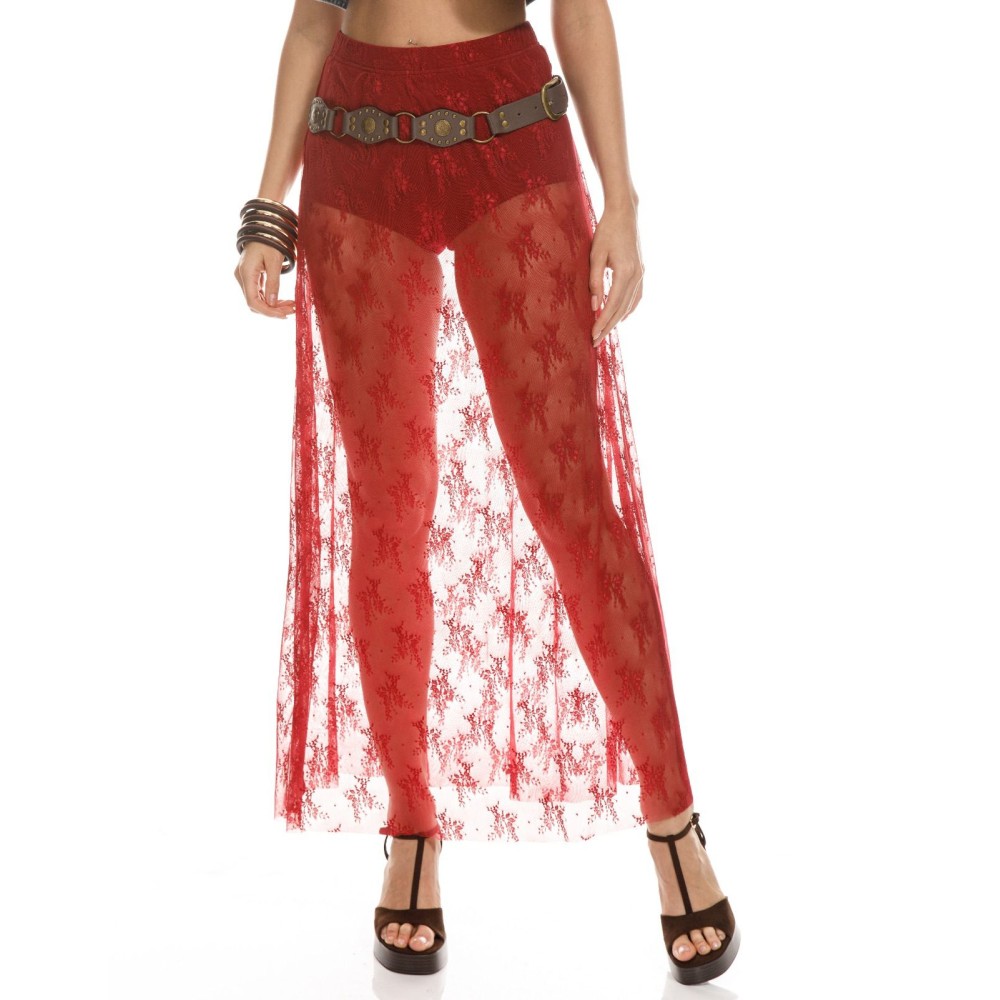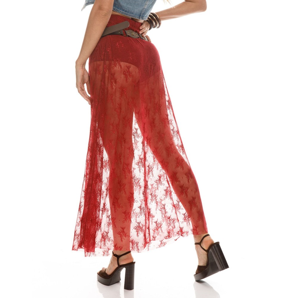 FALDA LARGA ENCAJE VINO