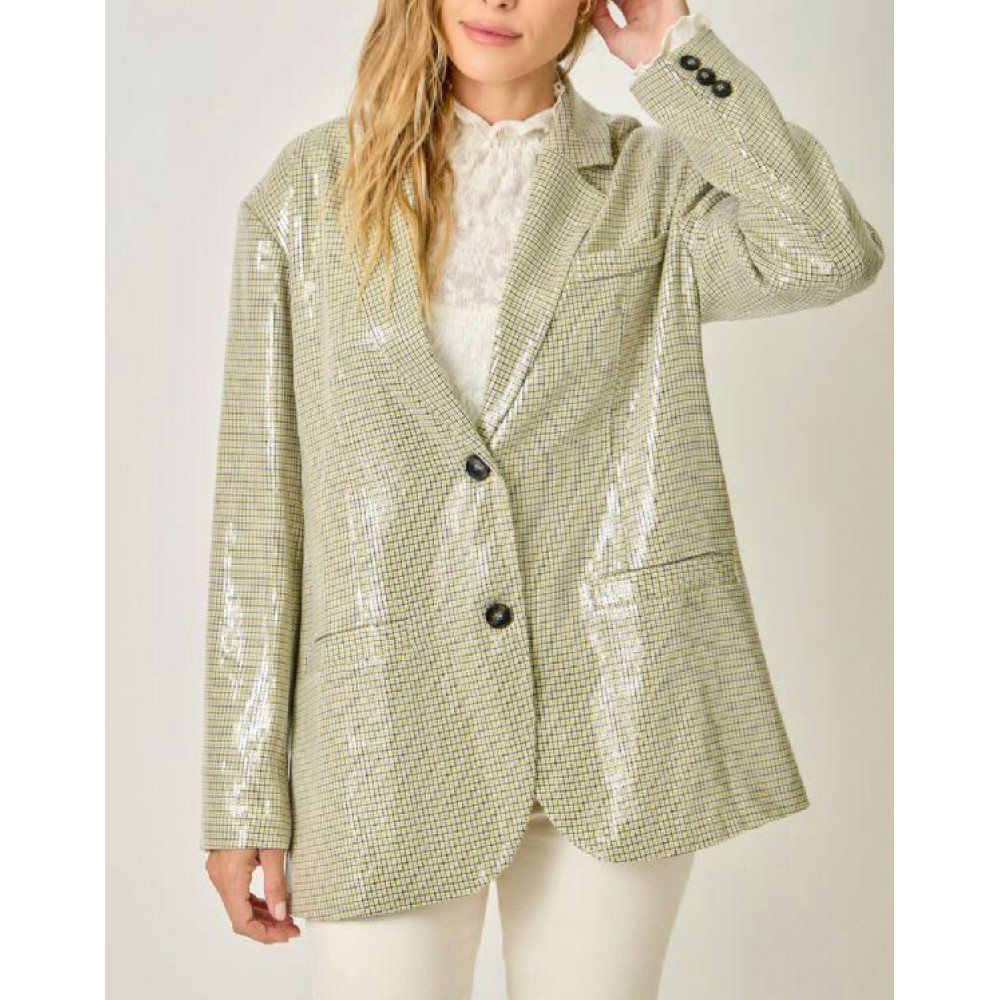 BLAZER CUADROS OLIVO LENTEJUELA
