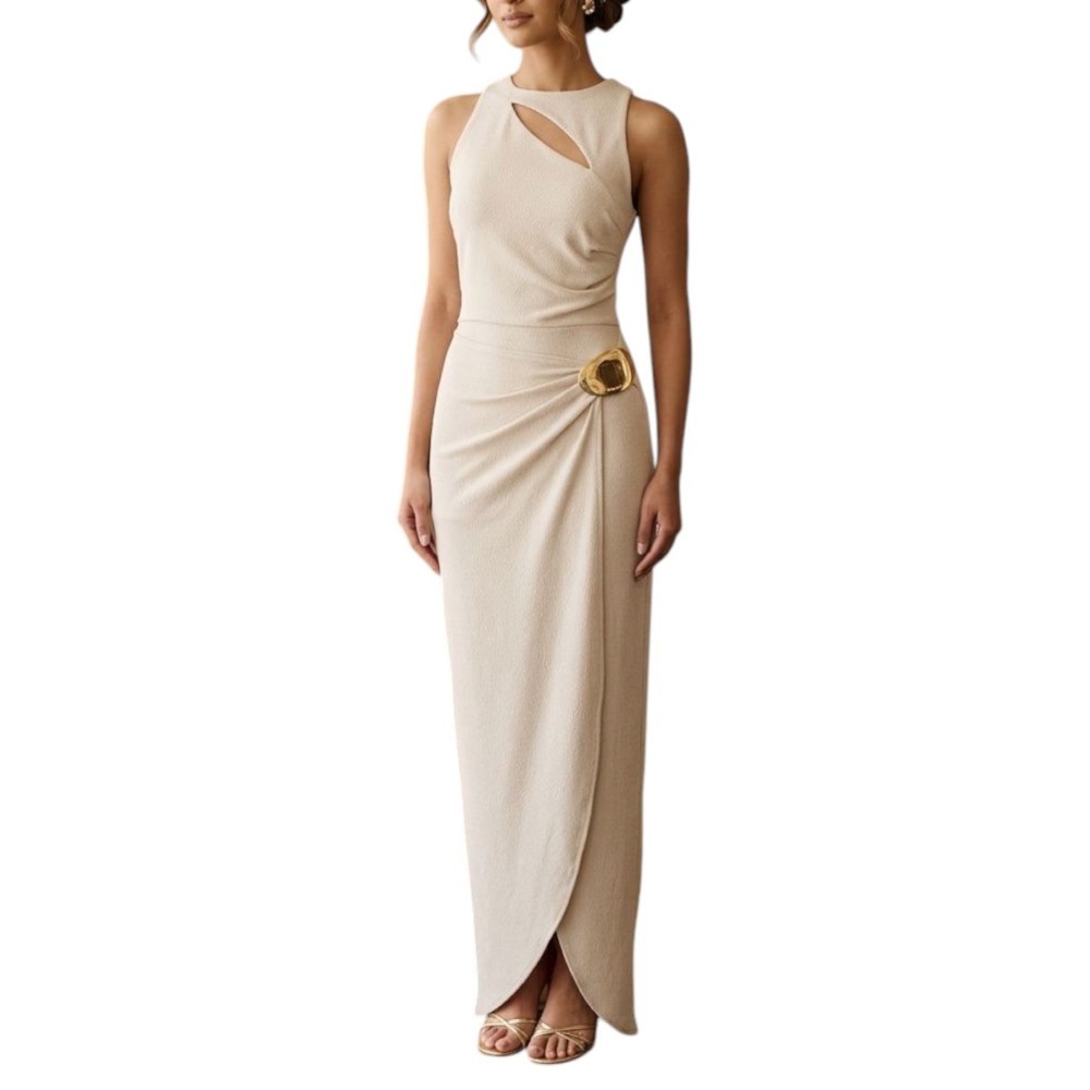 VESTIDO LARGO NATURAL METAL